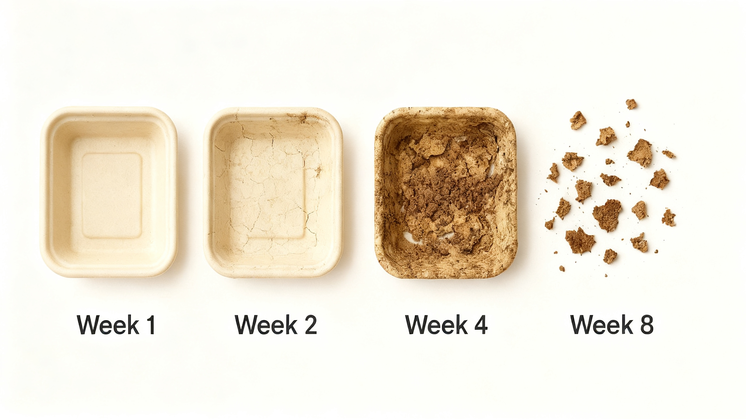 Our fully biodegradable materials (bamboo-based biopolymers, corn starch, bagasse, PLA, PBAT, etc.) can partially decompose within 128 days and fully break down within 180 days, leaving no residue or microplastics.