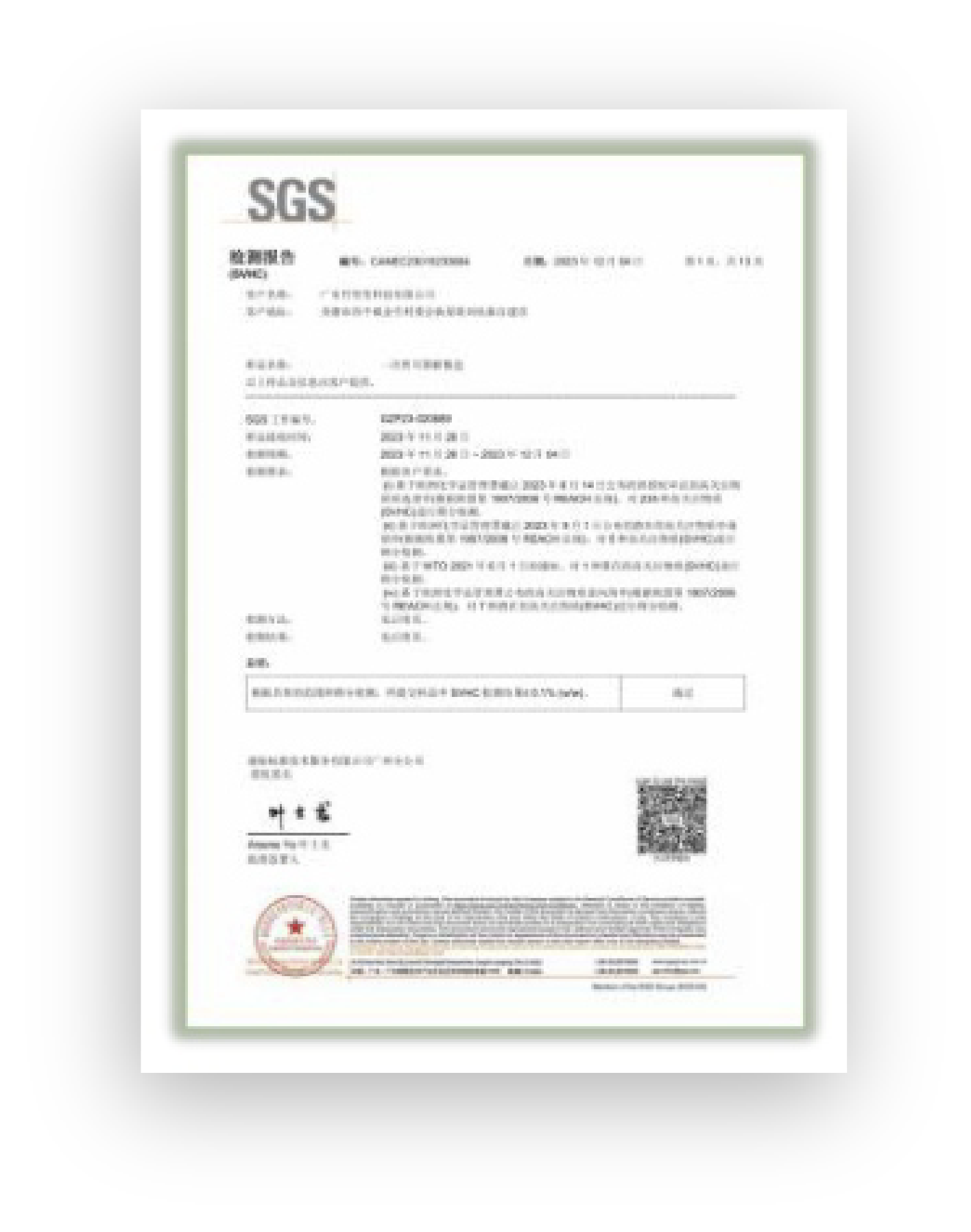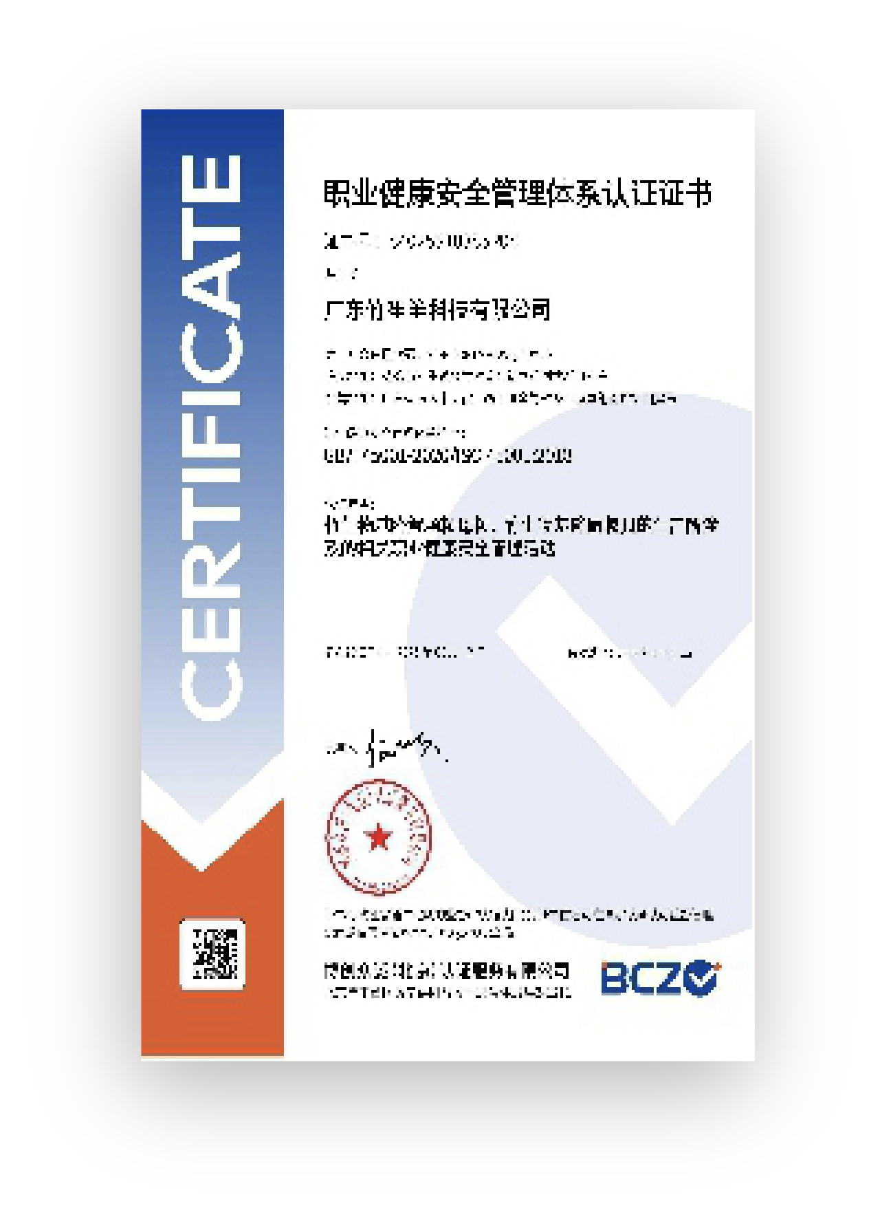 Certified by European CE, German TÜV Rheinland testing, and SGS FDA certification, it concurrently establishes environmental management systems (compliant with GB/T24001-2016/ISO14001:2015) and a Quality Management System (conforming to GB/T19001-2016/ISO9001:2015), and an Occupational Health and Safety Management System (conforming to GB/T45001-2020/ISO45001:2018), achieving standardized control throughout the entire production process.