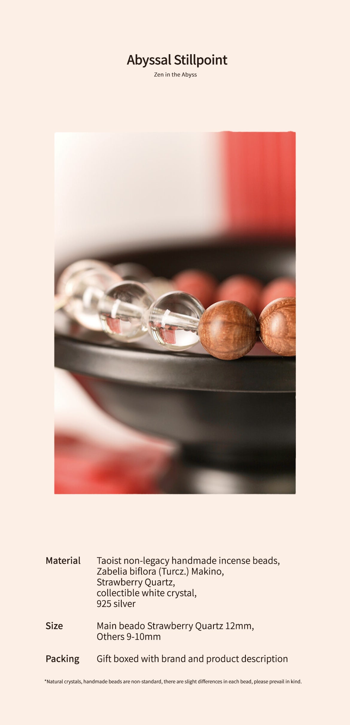 Material: Taoist non-legacy handmade incense beads, Zabelia biflora (Turcz.) Makino, Strawberry Quartz, collectible white crystal, 925 silver
