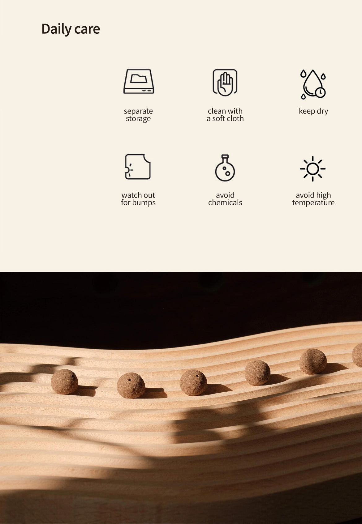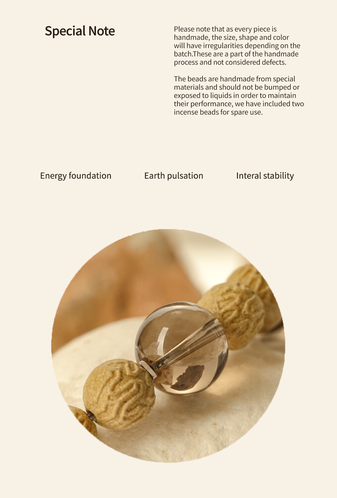 The beads are handmade from special materials and should not be bumped or exposed to liquids in order to maintain their performance, we have included two incense beads for spare use.