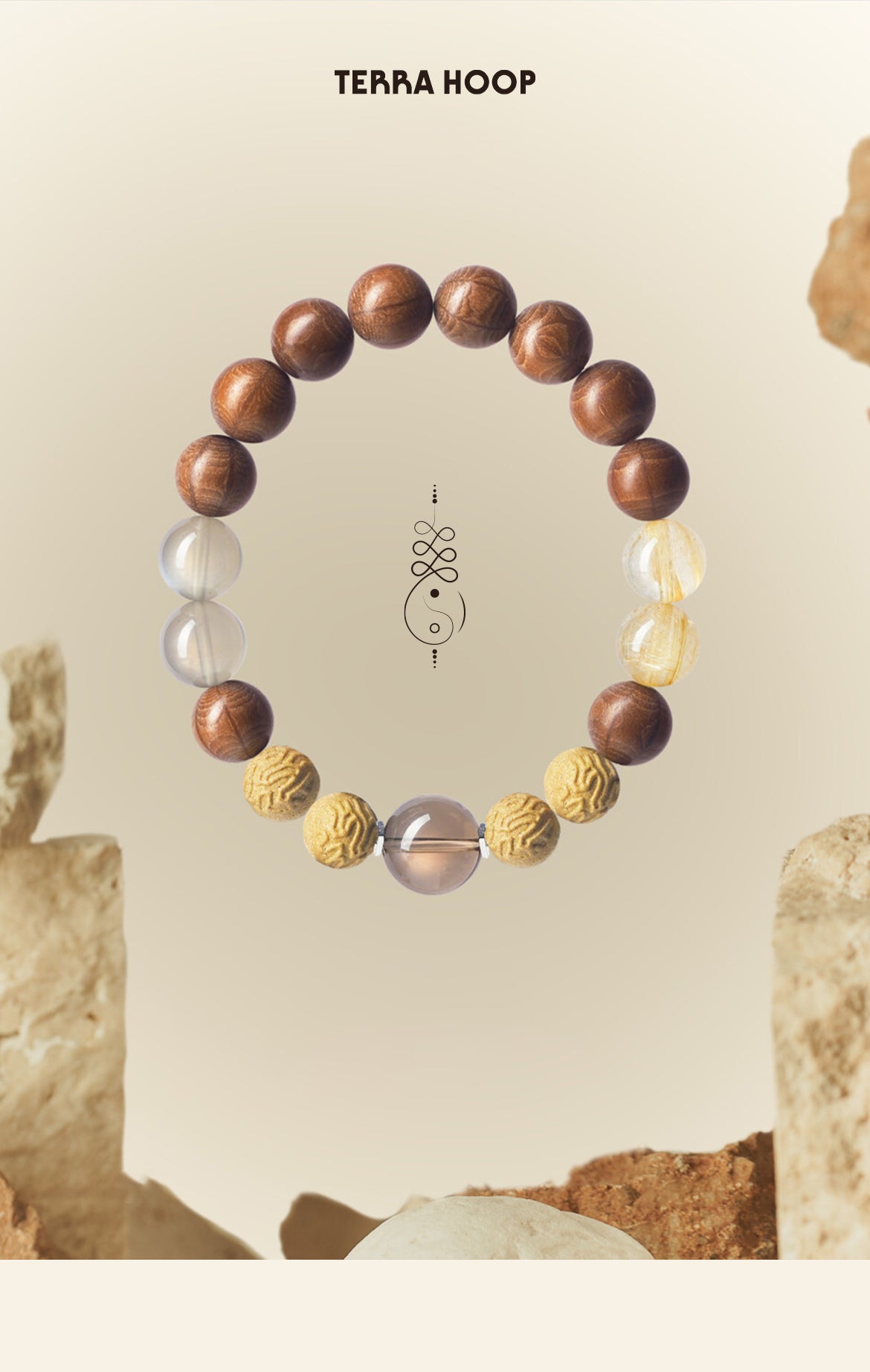 Earth Element incense bracelet with crystals and wood, money drawing