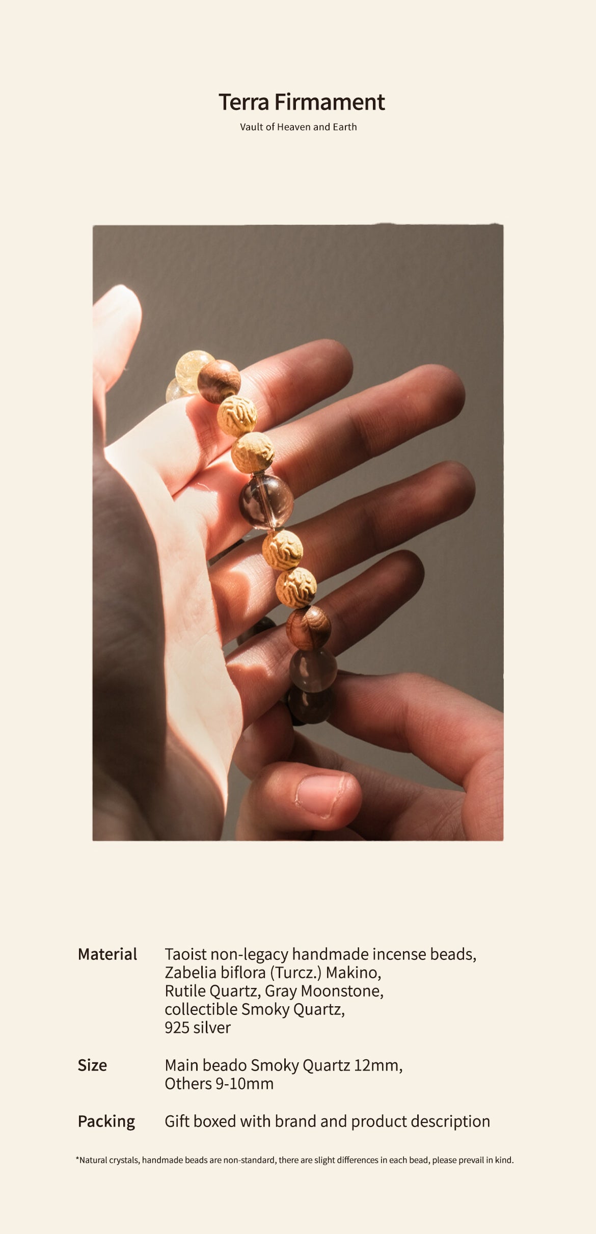 Material: Taoist non-legacy handmade incense beads, Zabelia biflora (Turcz.) Makino, Rutile Quartz, Gray Moonstone, collectible Smoky Quartz, 925 silver