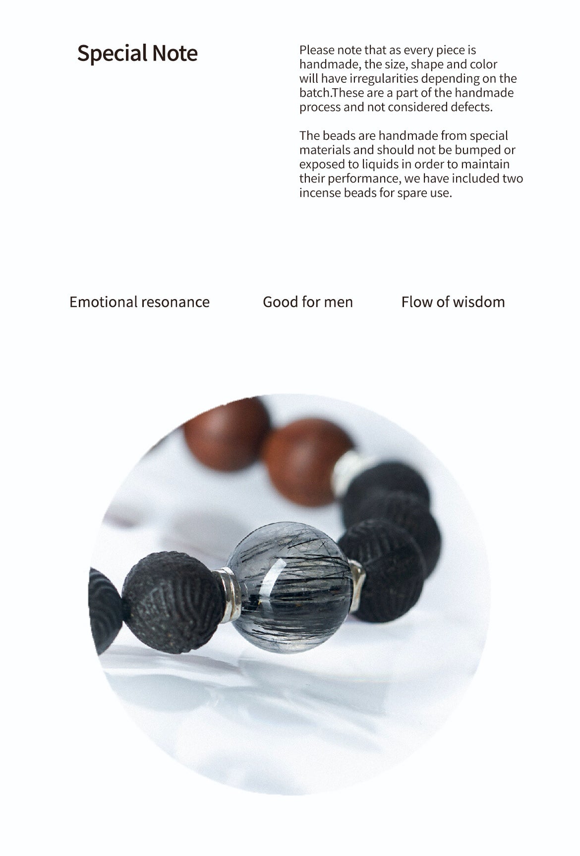 Material: Taoist non-legacy handmade incense beads, Zabelia biflora (Turcz.) Makino, Black Rutilated Quartz, collectible white crystal, 925 silver